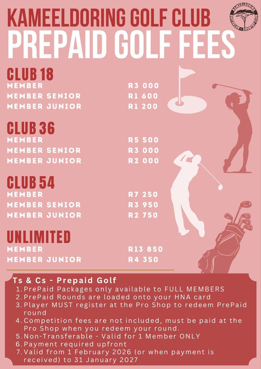 PLEASE NOTE THAT KAMEELDORING GOLF CLUB IS CLOSED ON A MONDAY